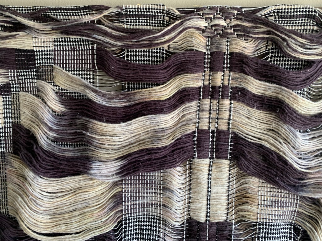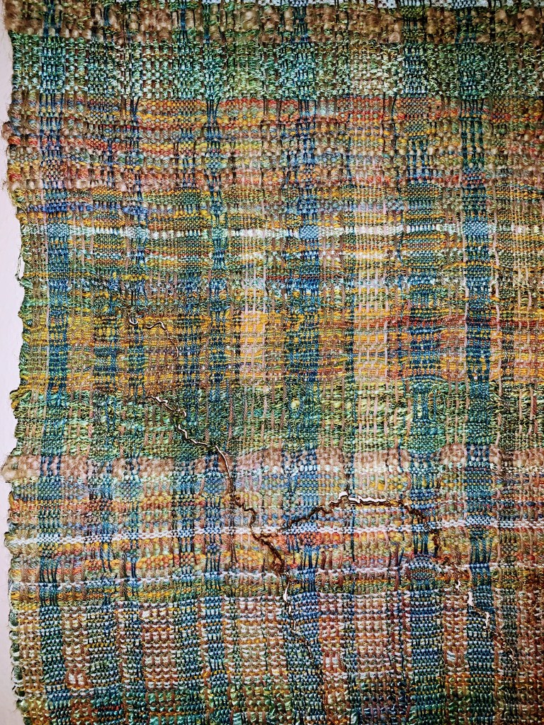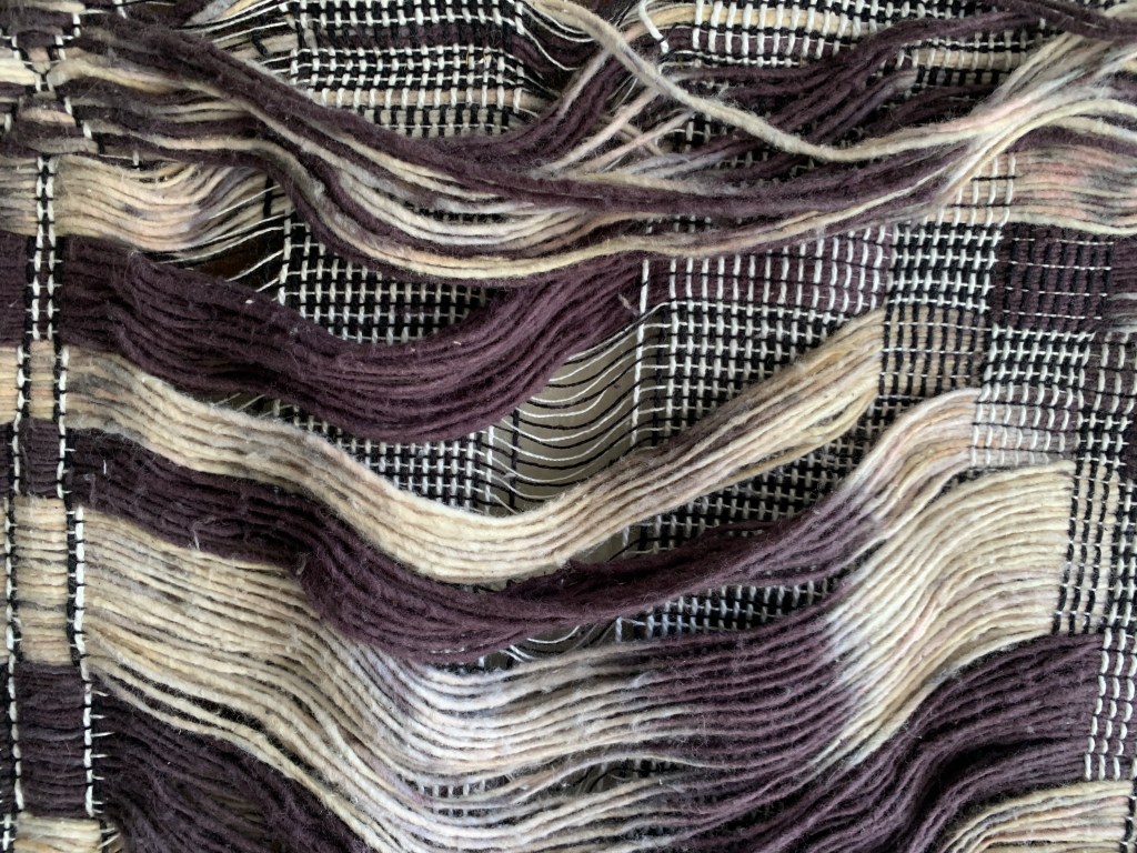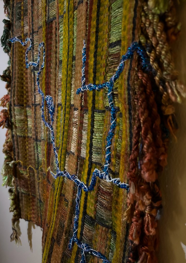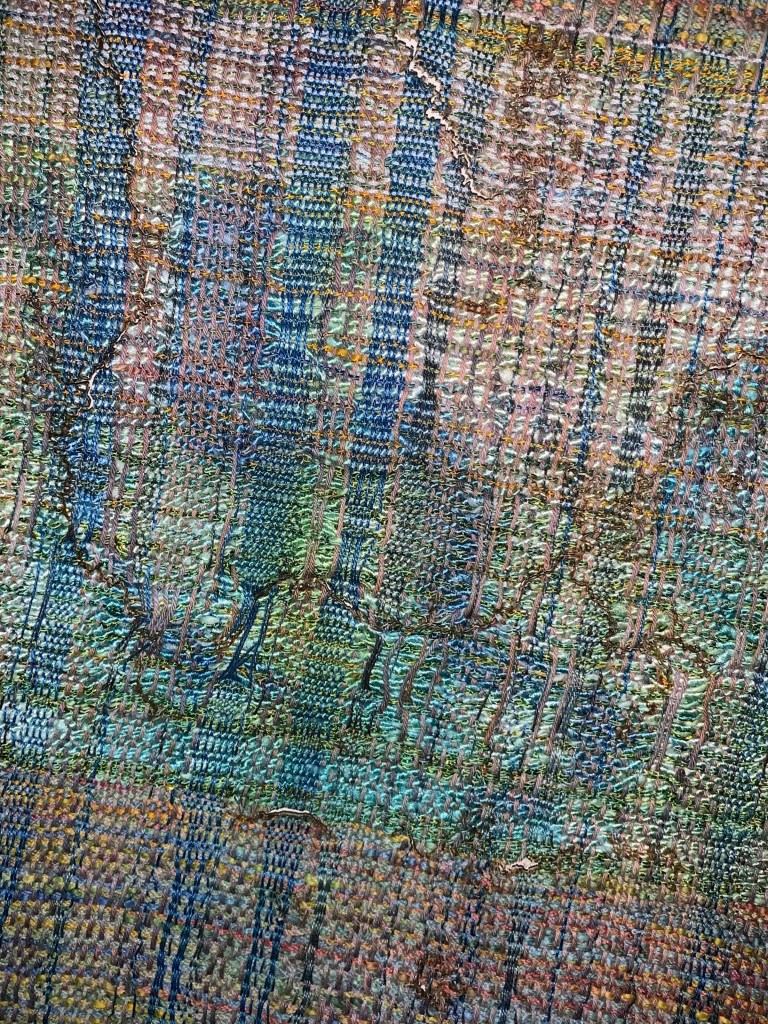 Cotton; Rayon; Wool; Interfacing; Painted Warp and Weft; Over-dyed; Bleached; Painted Weaving; Cuyahoga River Laser-cut