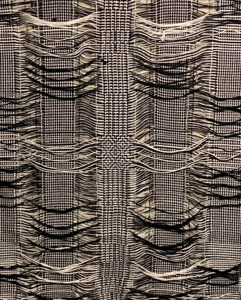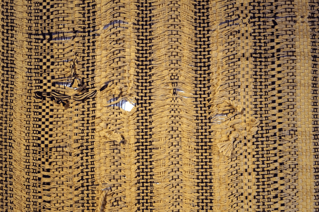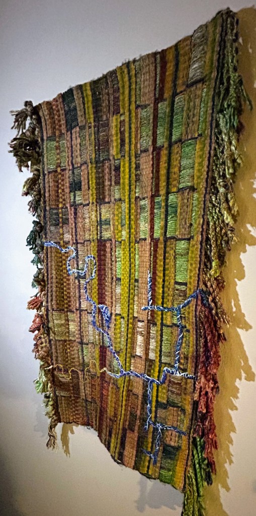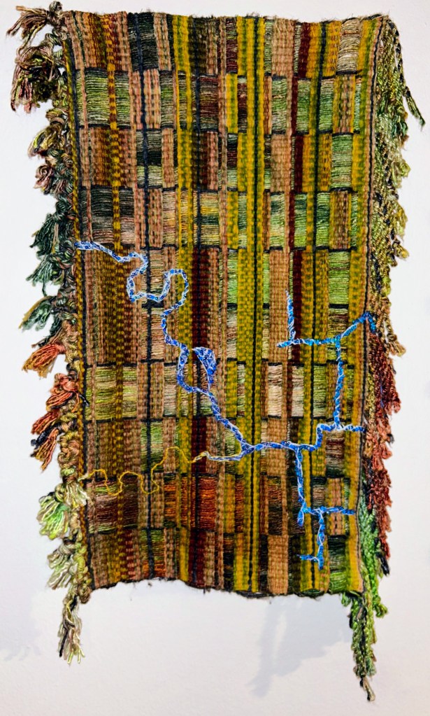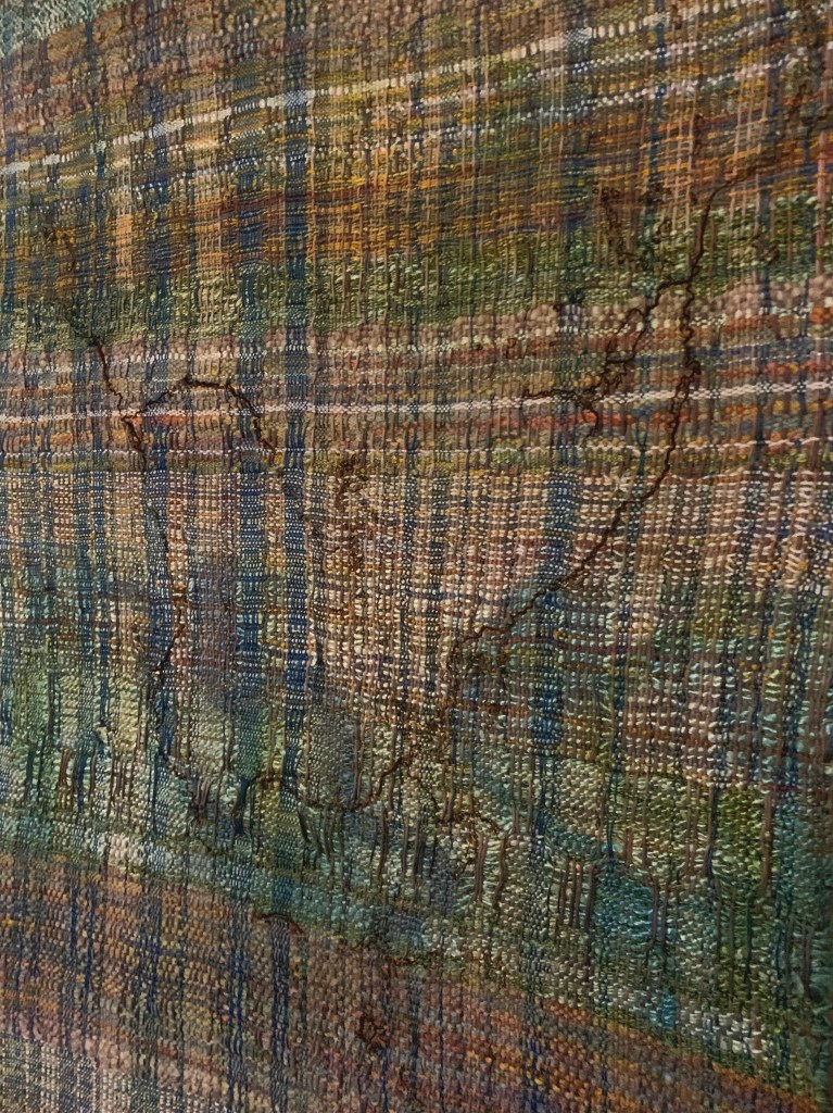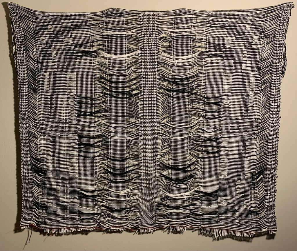 Cotton; Rayon; Wool; Interfacing; Painted Warp and Weft; Over-dyed; Bleached; Painted Weaving; Cuyahoga River Laser-cut
