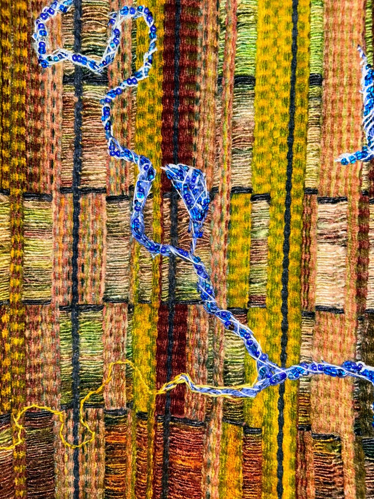Ikat-Dyed Monofilament; Wool; Hand-Felted Ropes; Beads